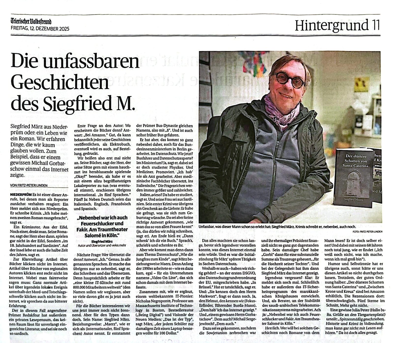 Siegfried M. aus Niederprüm oder: ein Leben wie ein Roman. Wir erfahren Dinge, die wir …